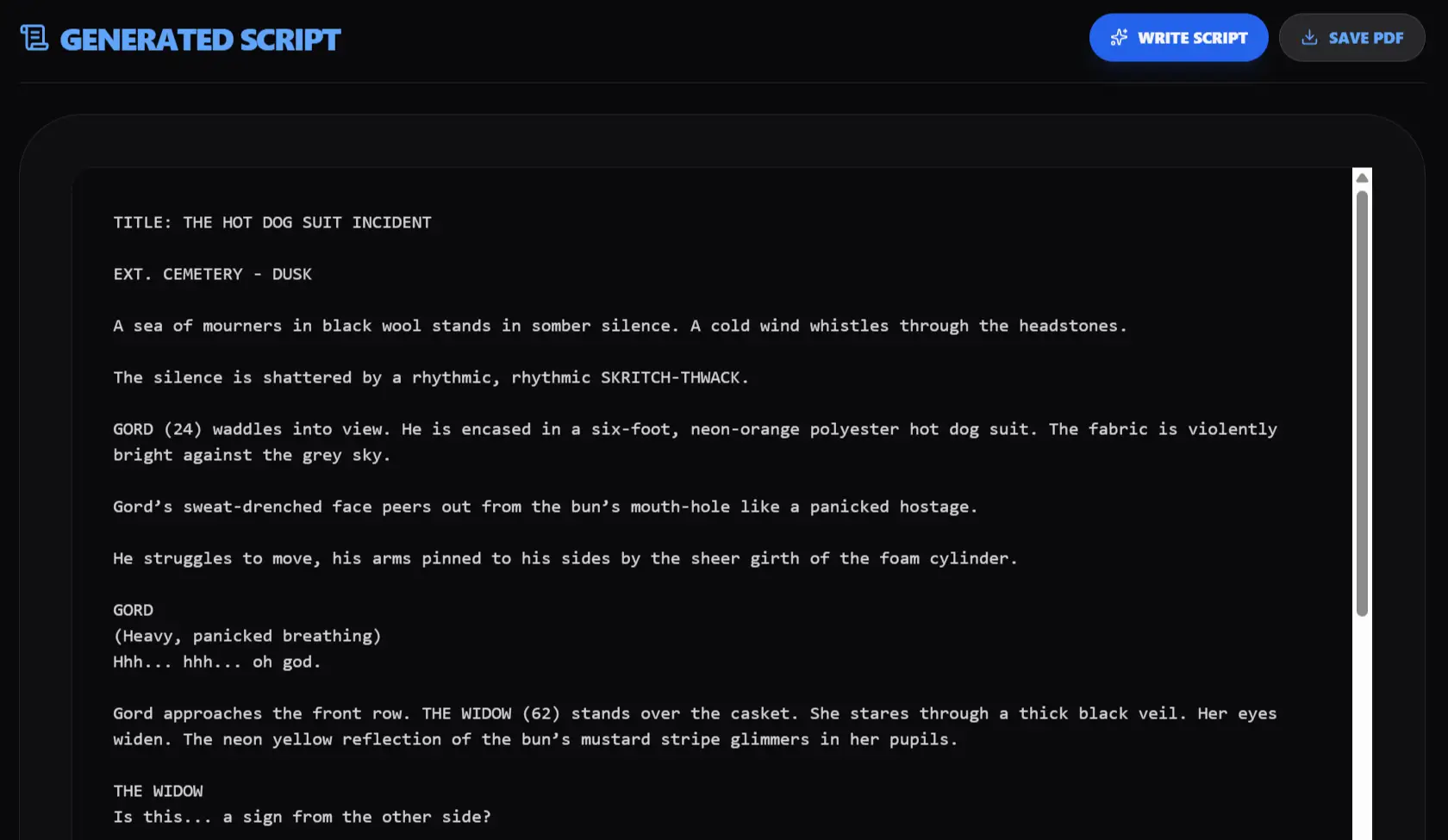 Let’s be honest: standard screenwriting software feels like doing your taxes. When you get hit with a genuinely unhinged idea—say, a guy who is trying to successfully navigate a job interview while a bird is loose in his shirt—the absolute last thing you want to do is spend two hours fighting with dual-column audio/video formatting macros.