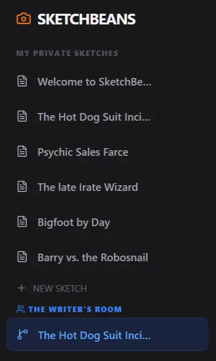 Want to invite chaos? Click Open to Writer’s Room to push a public branch of your sketch. Anyone with the link can jump in, tweak the dialogue, or add new shots. As the showrunner, you can review the damage and pull the best jokes back to your private master.